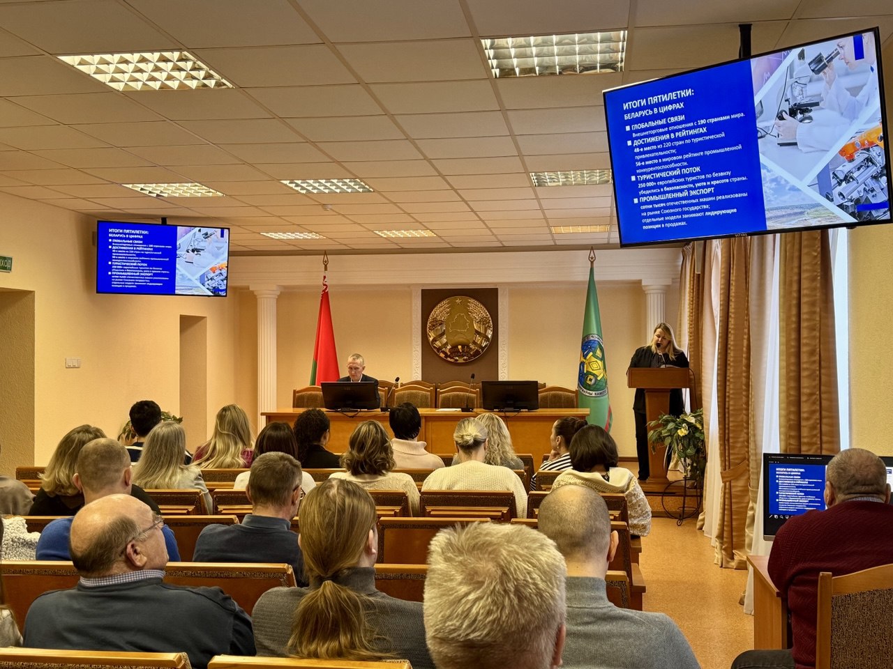 В головном агентстве докладчиком по теме выступила начальник отдела организационно-правовой, кадровой и идеологической работы Таранкова Марина Ивановна, которая рассказала собравшимся о важнейших моментах послания, а также актуальных вопросах, касающиеся социально-экономического развития страны. Спикер отметила, что белорусы сохранили сильный реальный сектор экономики, а золотовалютные резервы находятся на историческом максимуме. Кроме этого, обеспечена эффективная занятость населения, обеспечен достойный уровень доходов и, самое главное, безопасность.