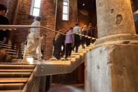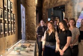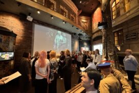 Сотрудники совершили увлекательное путешествие по экспозициям музея, особое впечатление на всех присутствующих произвели ожившие с помощью нейросетей образы героев войны и масштабные диорамы событий тех лет.