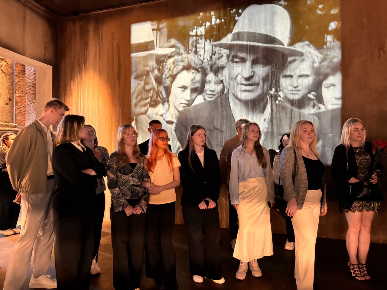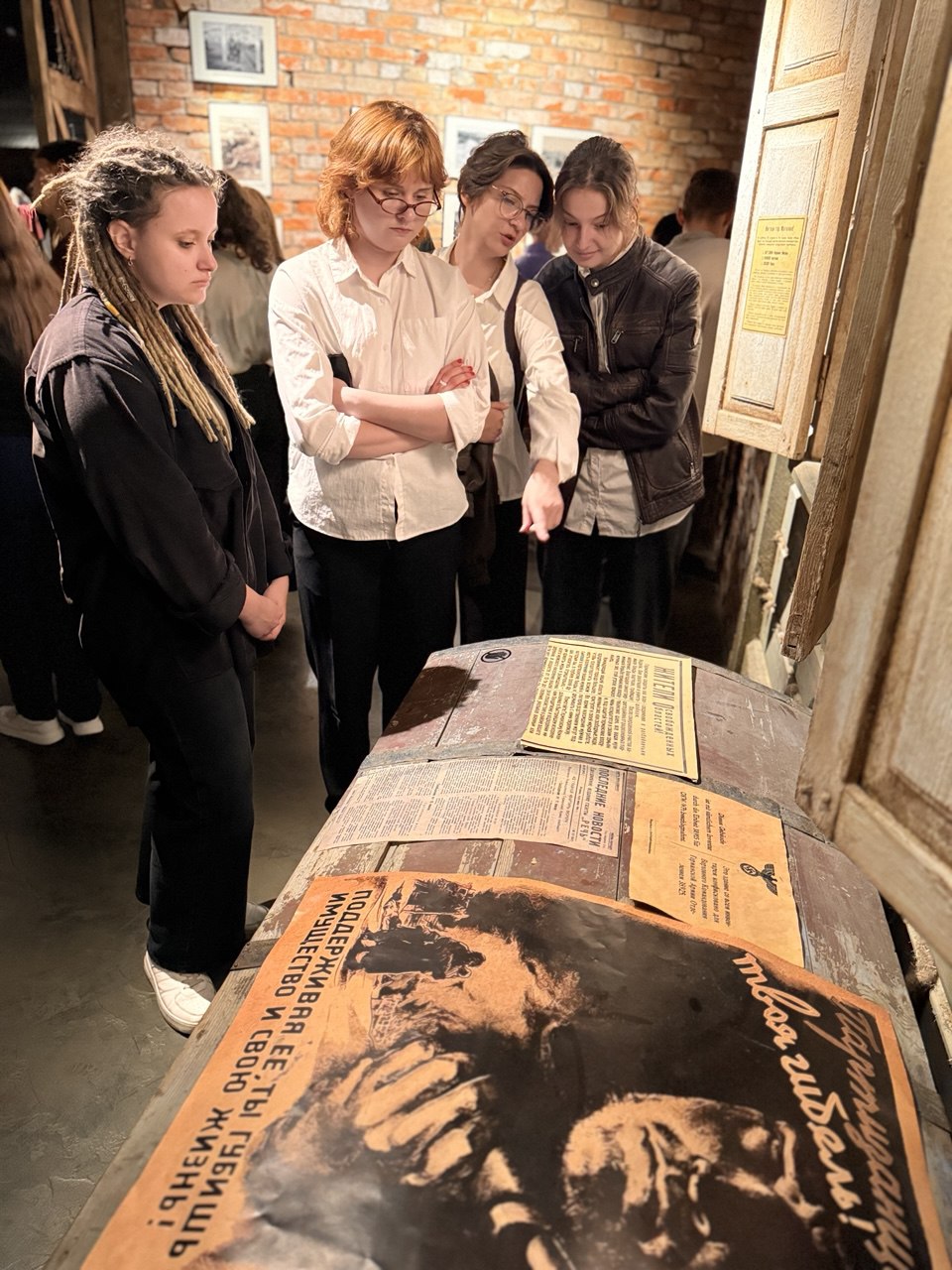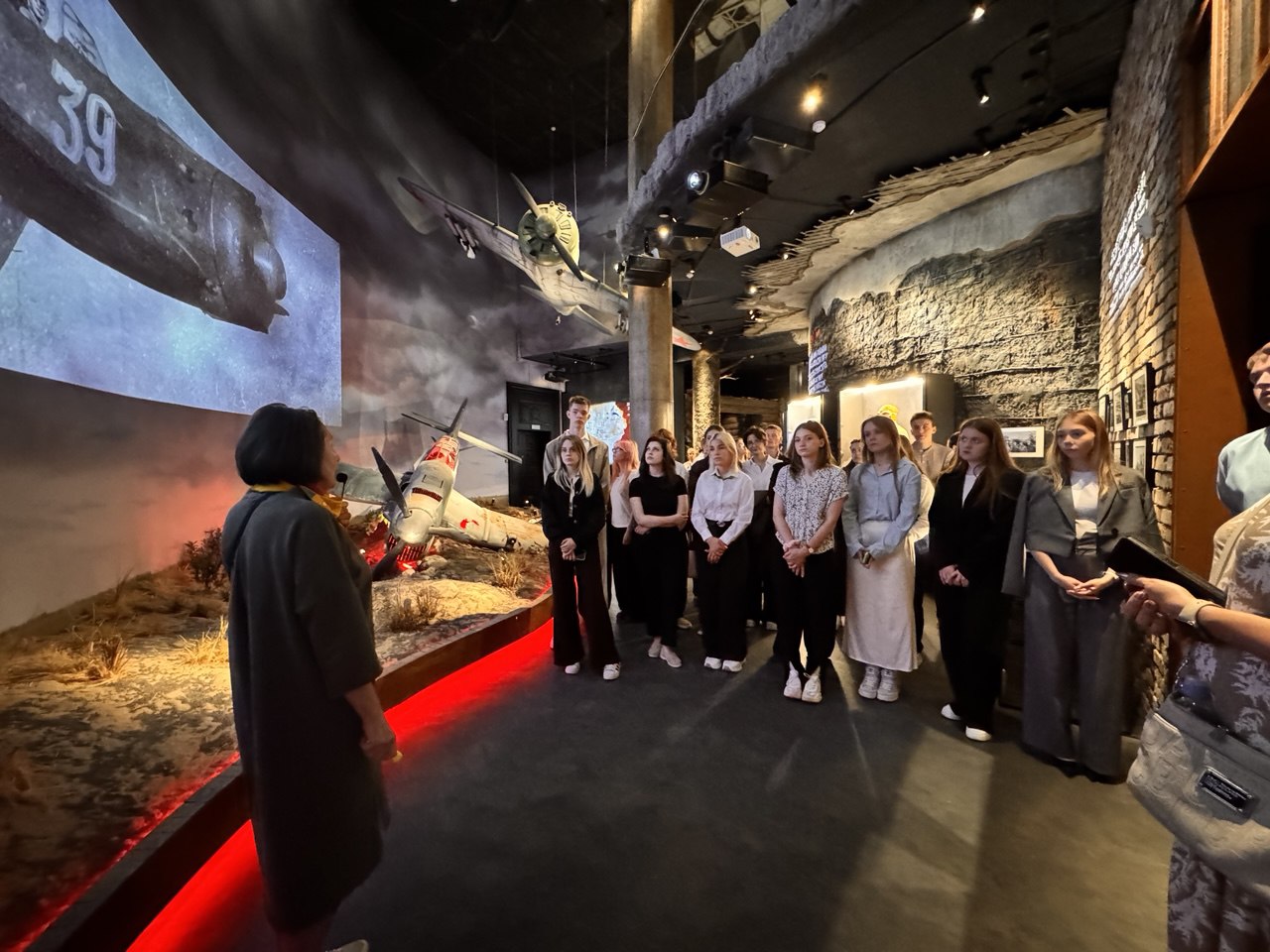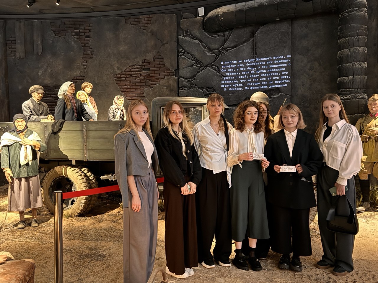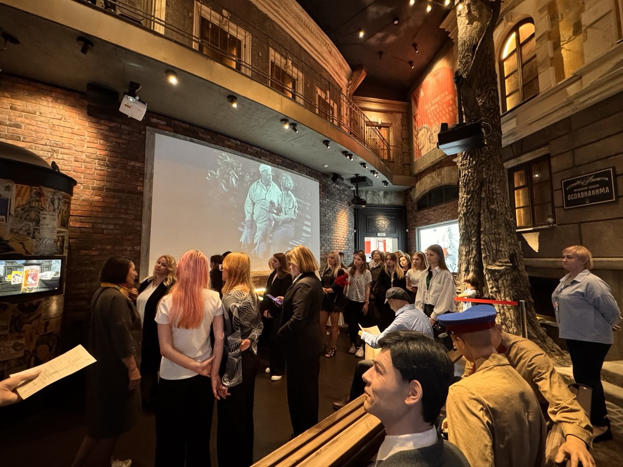 Сотрудники совершили увлекательное путешествие по экспозициям музея, особое впечатление на всех присутствующих произвели ожившие с помощью нейросетей образы героев войны и масштабные диорамы событий тех лет.