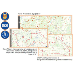 По результатам взаимодействия с Генеральной прокуратурой Республики Беларусь на ПКК актуализированы пространственные слои ”Сожжёные деревни“ и ”Места принудительного содержания населения (лагеря смерти), созданные нацистами в период оккупации БССР в годы ВОВ“. В результате проведенных работ на карте визуализирована информация о более 12 тысяч сельских населенных пунктах, сожженных в период Великой Отечественной войны и 570 местах принудительного содержания населения (лагерях смерти), показывающая масштаб понесенных потерь Беларуси в годы Великой Отечественной войны.