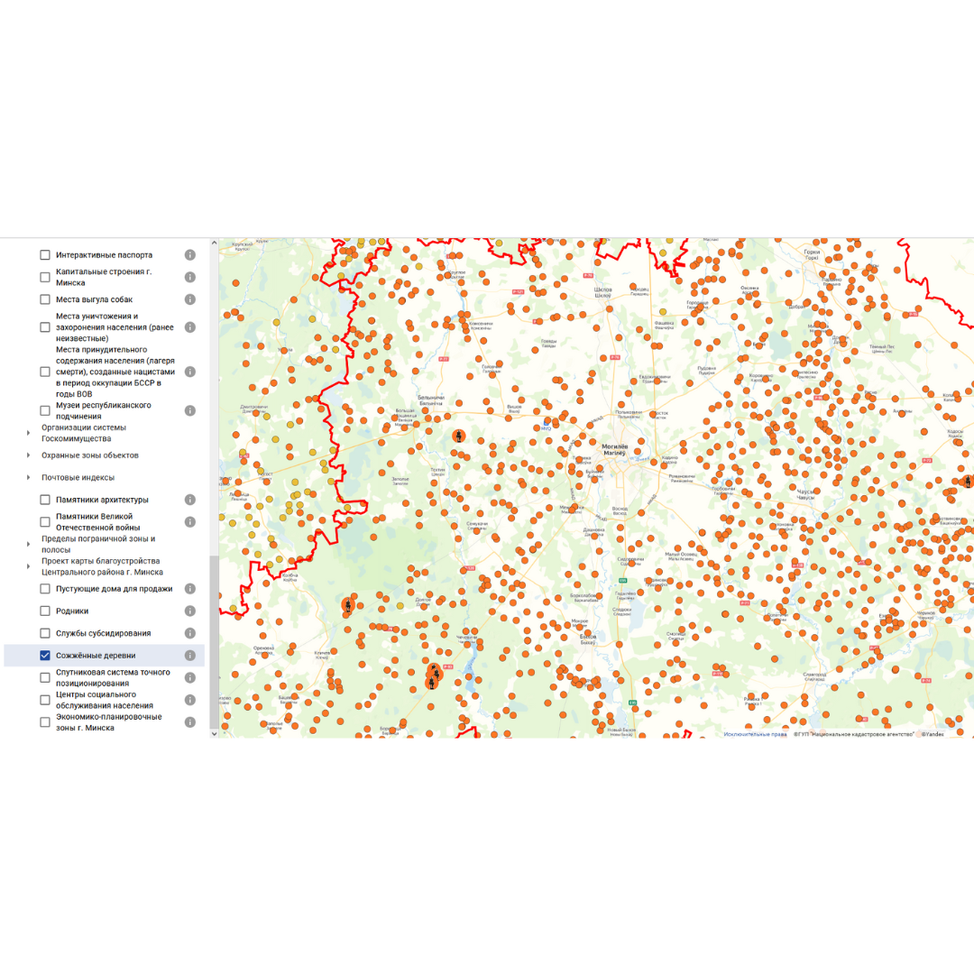 По результатам взаимодействия с Генеральной прокуратурой Республики Беларусь на ПКК актуализированы пространственные слои ”Сожжёные деревни“ и ”Места принудительного содержания населения (лагеря смерти), созданные нацистами в период оккупации БССР в годы ВОВ“. В результате проведенных работ на карте визуализирована информация о более 12 тысяч сельских населенных пунктах, сожженных в период Великой Отечественной войны и 570 местах принудительного содержания населения (лагерях смерти), показывающая масштаб понесенных потерь Беларуси в годы Великой Отечественной войны.