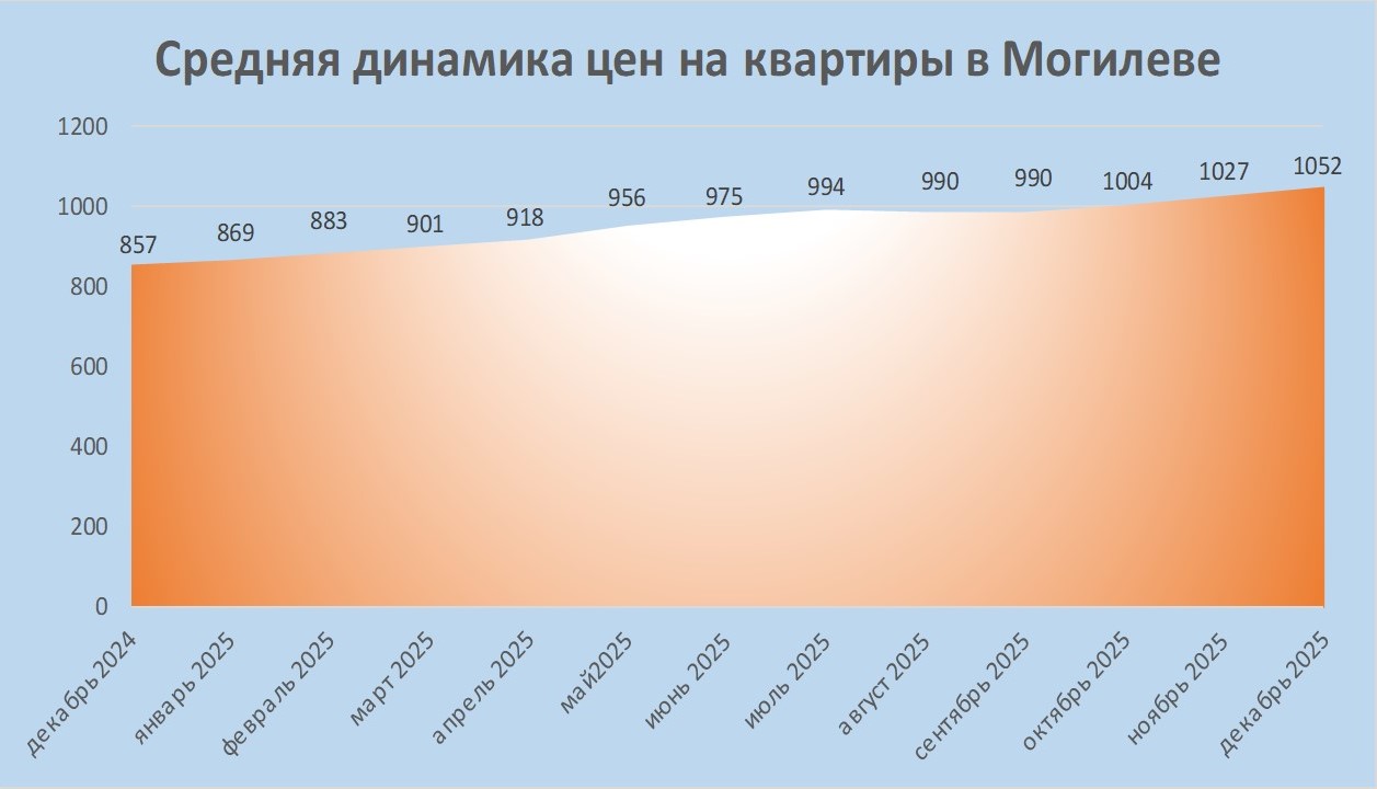 За последние 12 месяцев цены на квартиры в Могилеве выросли на 22,8% ($857- цена квадратного метра в декабре 2024 года).