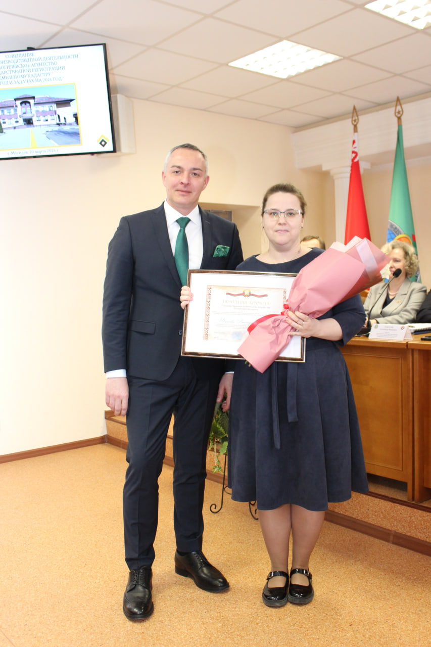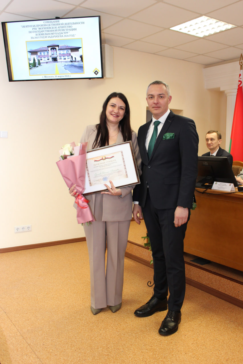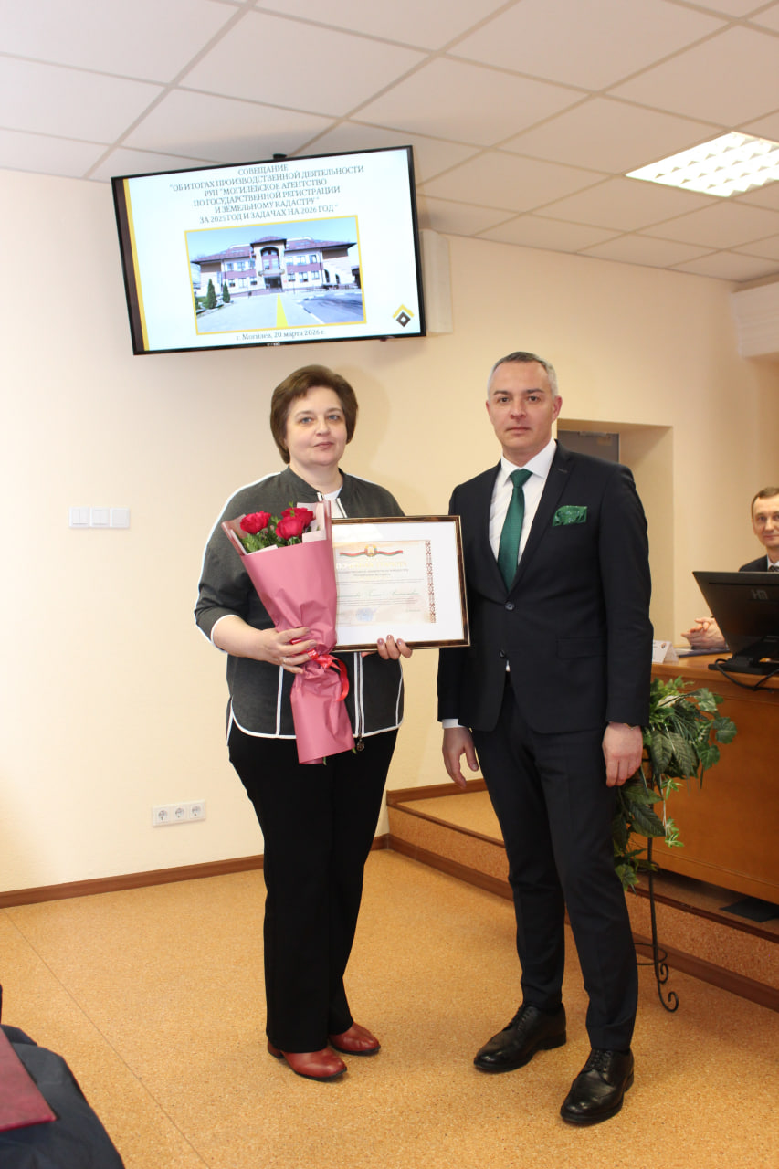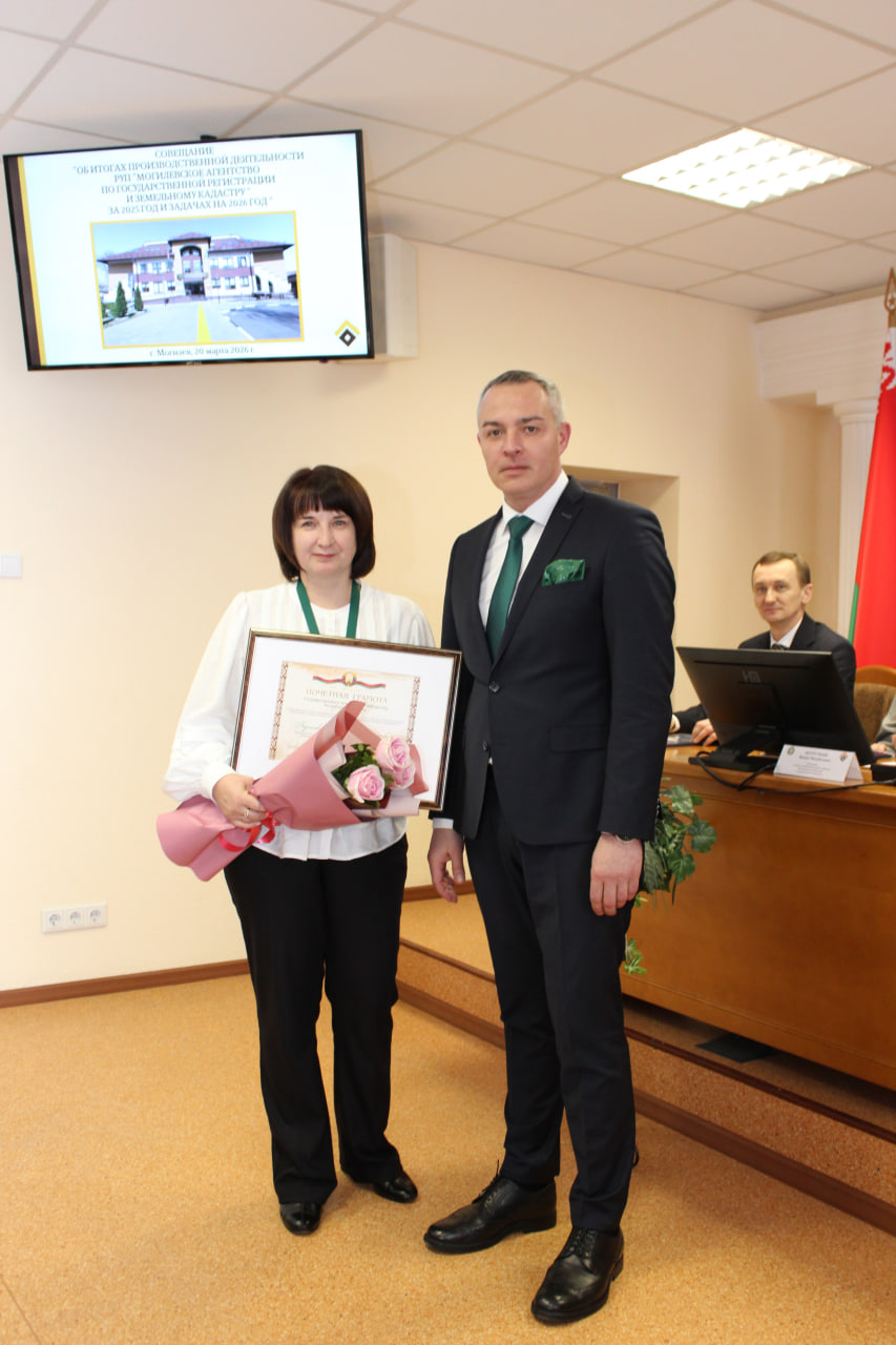 Сегодня, 20 марта, в Могилевском агентстве в торжественной обстановке прошло совещание ”Об итогах производственной деятельности РУП ”Могилевское агентство по государственной регистрации и земельному кадастру“ за 2025 год и задачах на 2026 год”. Мероприятие прошло под руководством директора агентства Александра Ивановича Ракусова.
