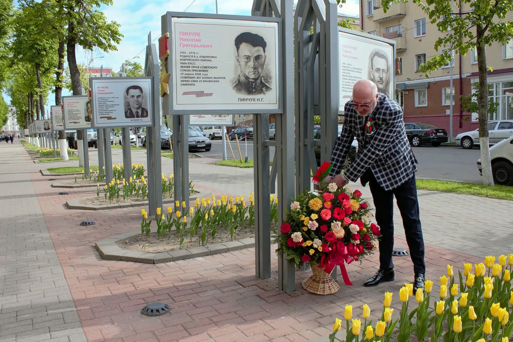 В год 80-летия освобождения нашей Родины от немецко-фашистских захватчиков, в преддверии Дня Победы делегация трудового коллектива РУП ”Могилевское агентство по государственной регистрации и земельному кадастру“ под руководством директора агентства Александра Ивановича Ракусова приняла участие в торжественном возложении цветов на Аллее Героев, которая увековечила имена 104 героев Советского Союза- уроженцев Приднепровского края.