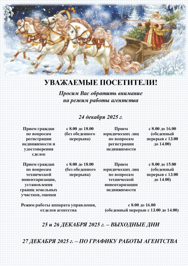 Уважаемые посетители, просим Вас обратить внимание на режим работы агентства admin700 24.12.2025 Новости Навигация по записям Предыдущий Предыдущая запись: 31 декабря 2025 года состоится заседание комиссии по противодействию коррупции Горецкого филиалаСледующий Следующая запись: В Кричевском филиале 24 декабря 2025 г. состоялось заседание комиссии по противодействию коррупции.
