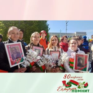 В знак благодарности и уважения к подвигу ветеранов сотрудники Могилевского агентства под руководством директора Александра Ивановича Ракусова и при участии заместителя директора Тамары Егоровны Богатко, присоединились к праздничному параду и прошли по главным улицам города с портретами своих родных — участников великой битвы за свободу своей Родины.