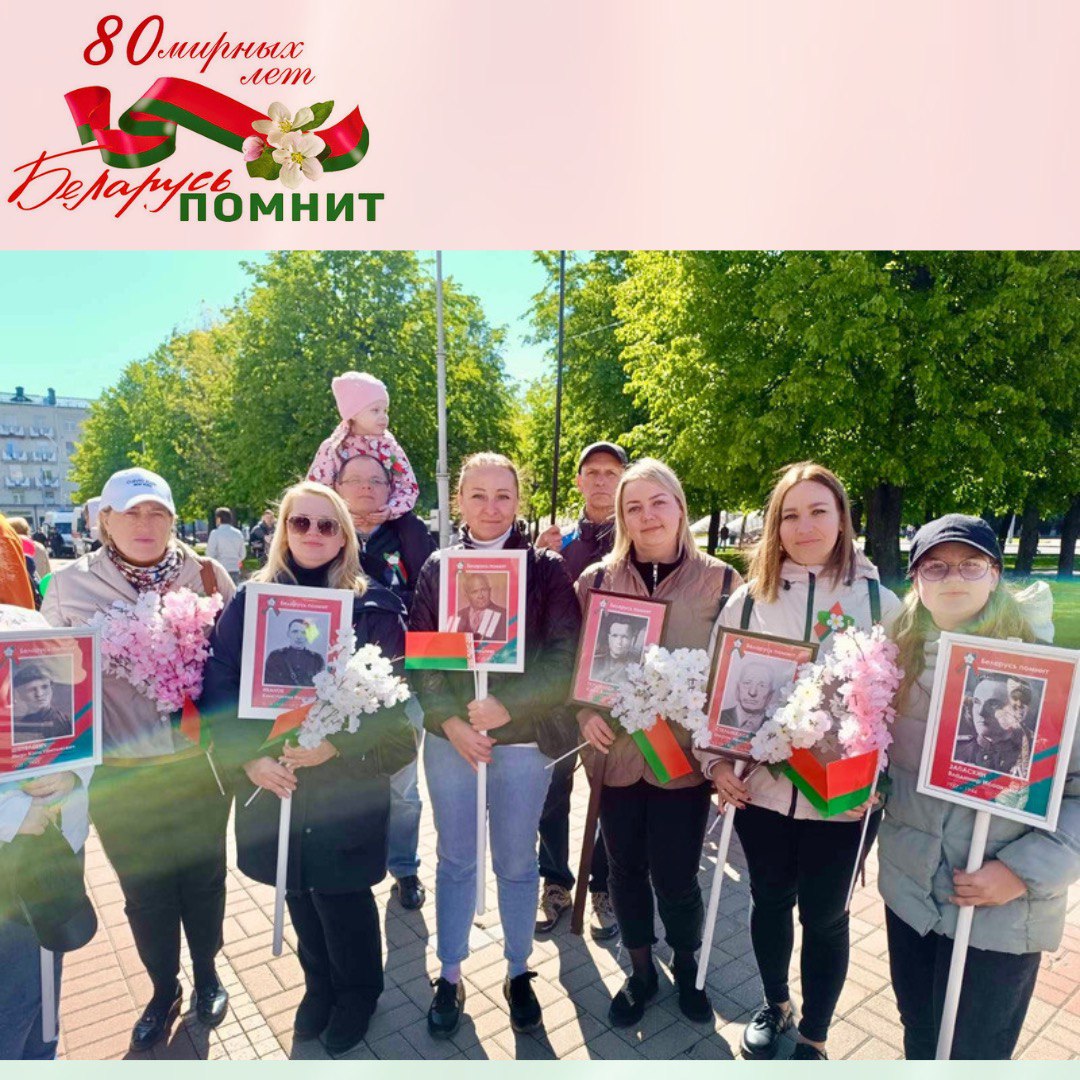 В знак благодарности и уважения к подвигу ветеранов сотрудники Могилевского агентства под руководством директора Александра Ивановича Ракусова и при участии заместителя директора Тамары Егоровны Богатко, присоединились к праздничному параду и прошли по главным улицам города с портретами своих родных — участников великой битвы за свободу своей Родины.